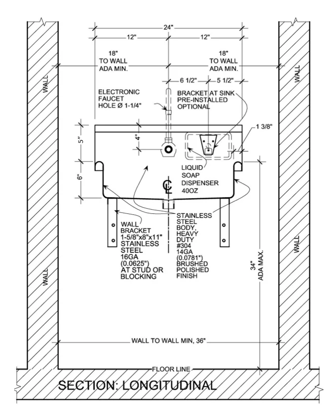 Shop our ADA-compliant stainless steel sink line. If you do not see an option you need, please call us! We can fabricate any sink needed.