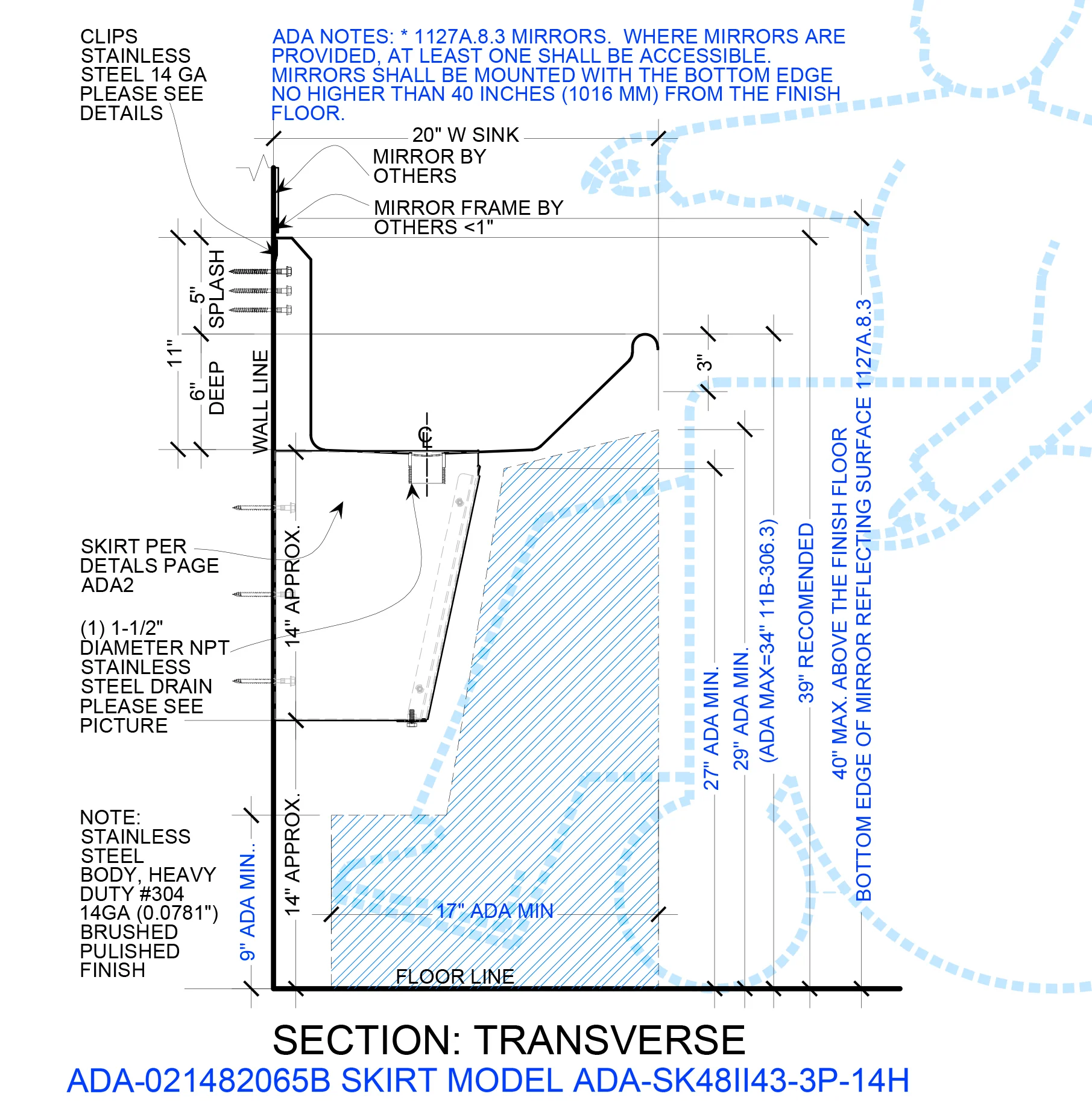 | 1 | Stainless Steel Skirt 18ga 44"x14" height at front, left & right |