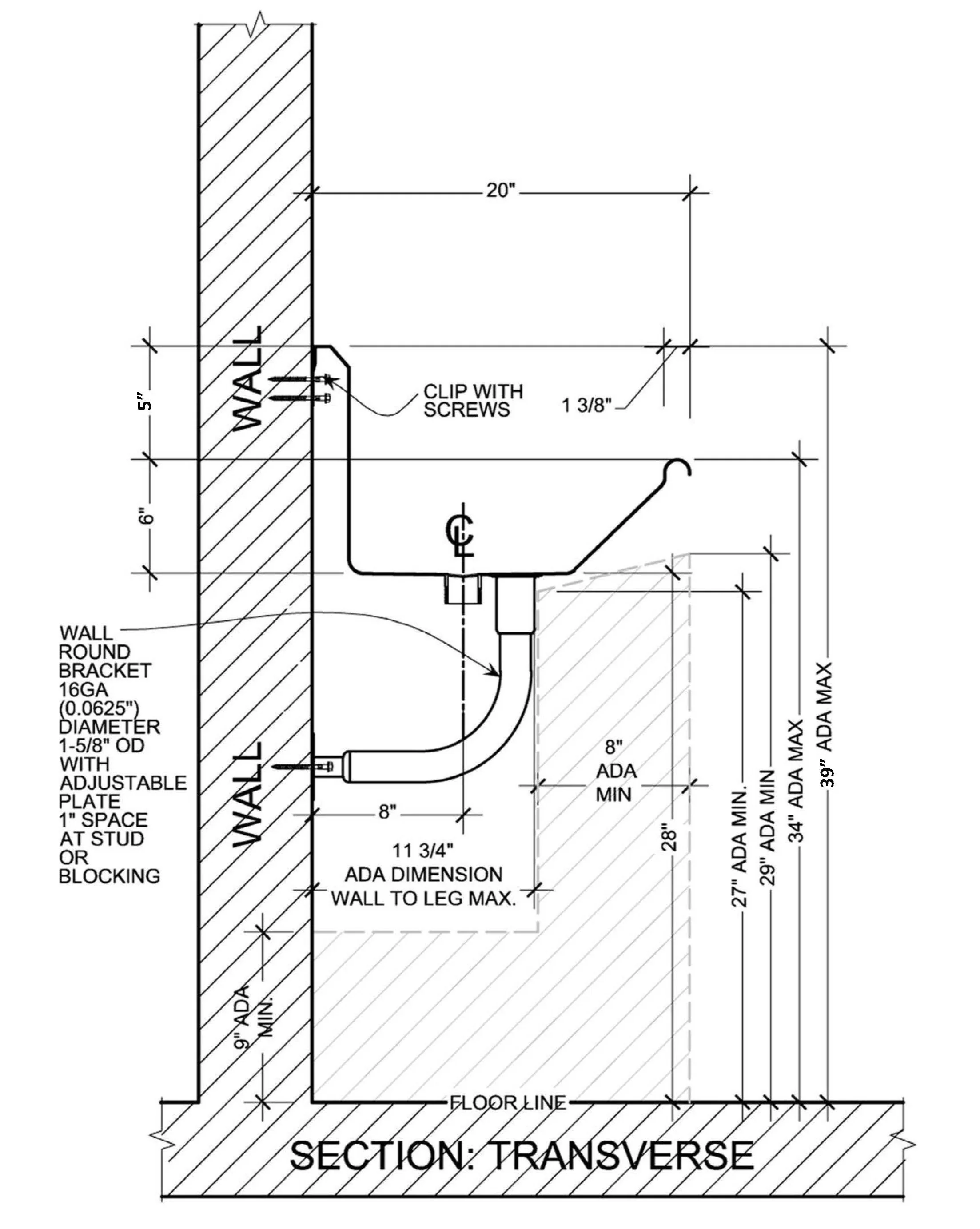 - With low profile backsplash for mirror ADA code 1127A.8.3.