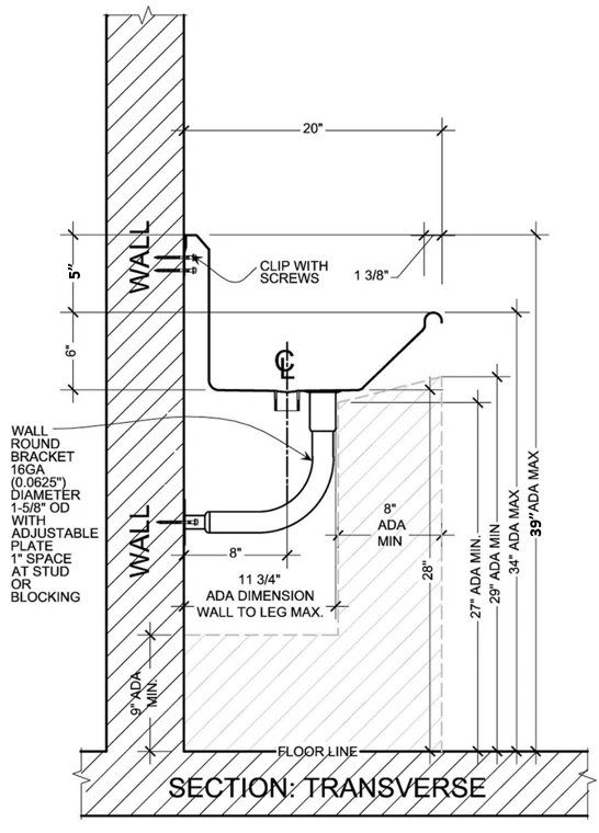- With low profile backsplash for mirror ADA code 1127A.8.3.